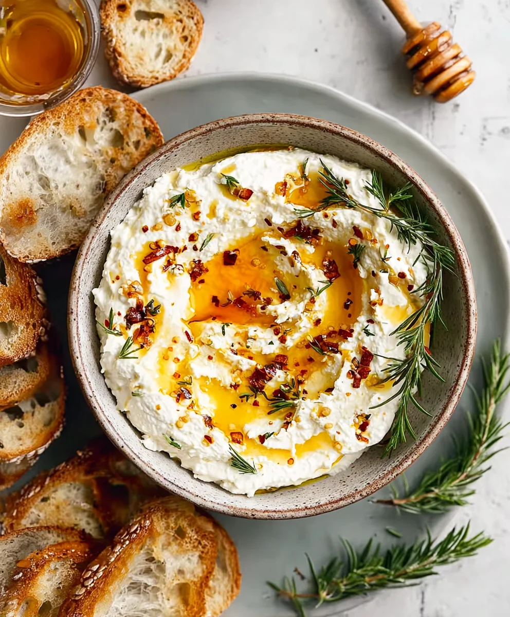 Spicy Ricotta Hot Honey Dip- Easy Appetizer