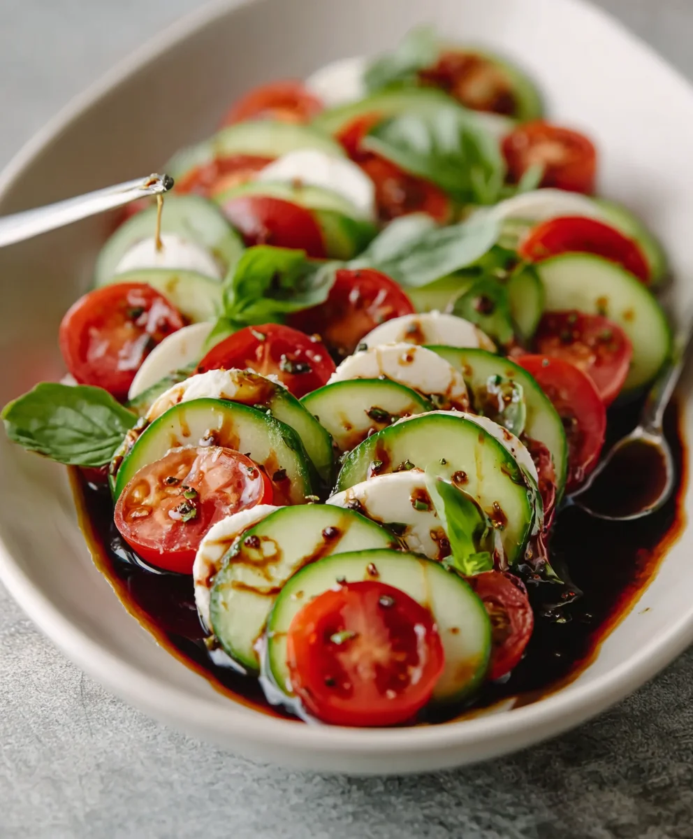 Fresh Cucumber Caprese Salad- Easy & Delicious